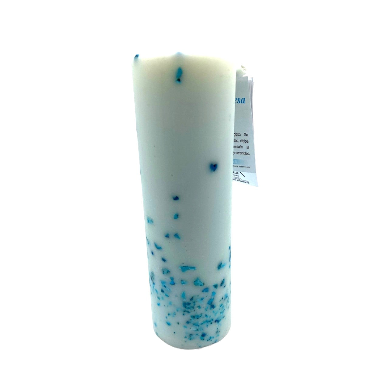 Vackert kristalljus med äkta Turkos som sprider harmoni, lugn och positiv energi. Den levande lågan reflekteras i turkosstenarna och skapar ett mjukt, stillsamt sken som förvandlar rummet till en fridfull oas.