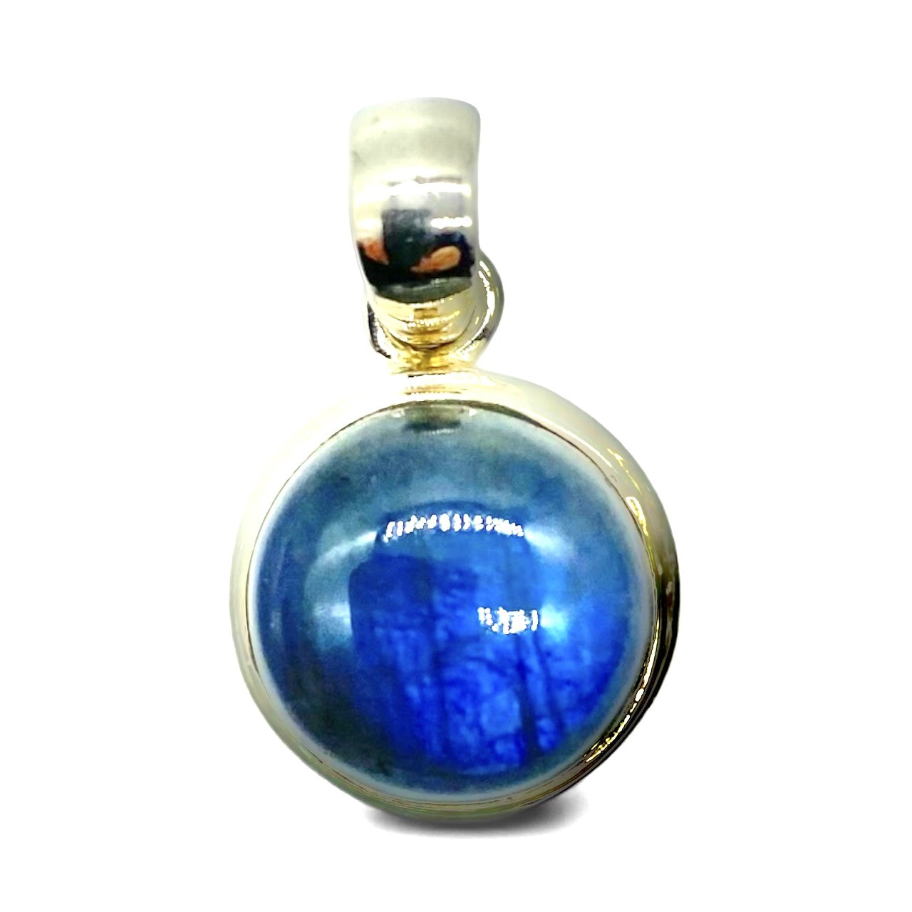 Vackert runt labradorit hänge i äkta silver som har en fin blå färgskiftning.