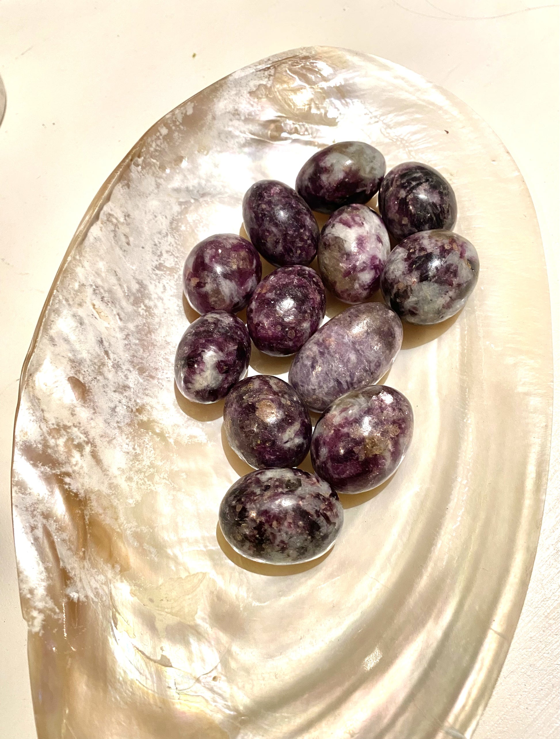 En sten för övergång, Lepidolit hjälper dig att förändra dina gamla mönster, och tillför ljus och hopp till situationen. Använd Lepidolit för att minska stress som kan upplevas vid förändringar. Balanserar och tillför inre ro. hjälper dig se orsak bakom negativa erfarenheter. Är känslomässigt balanserad.