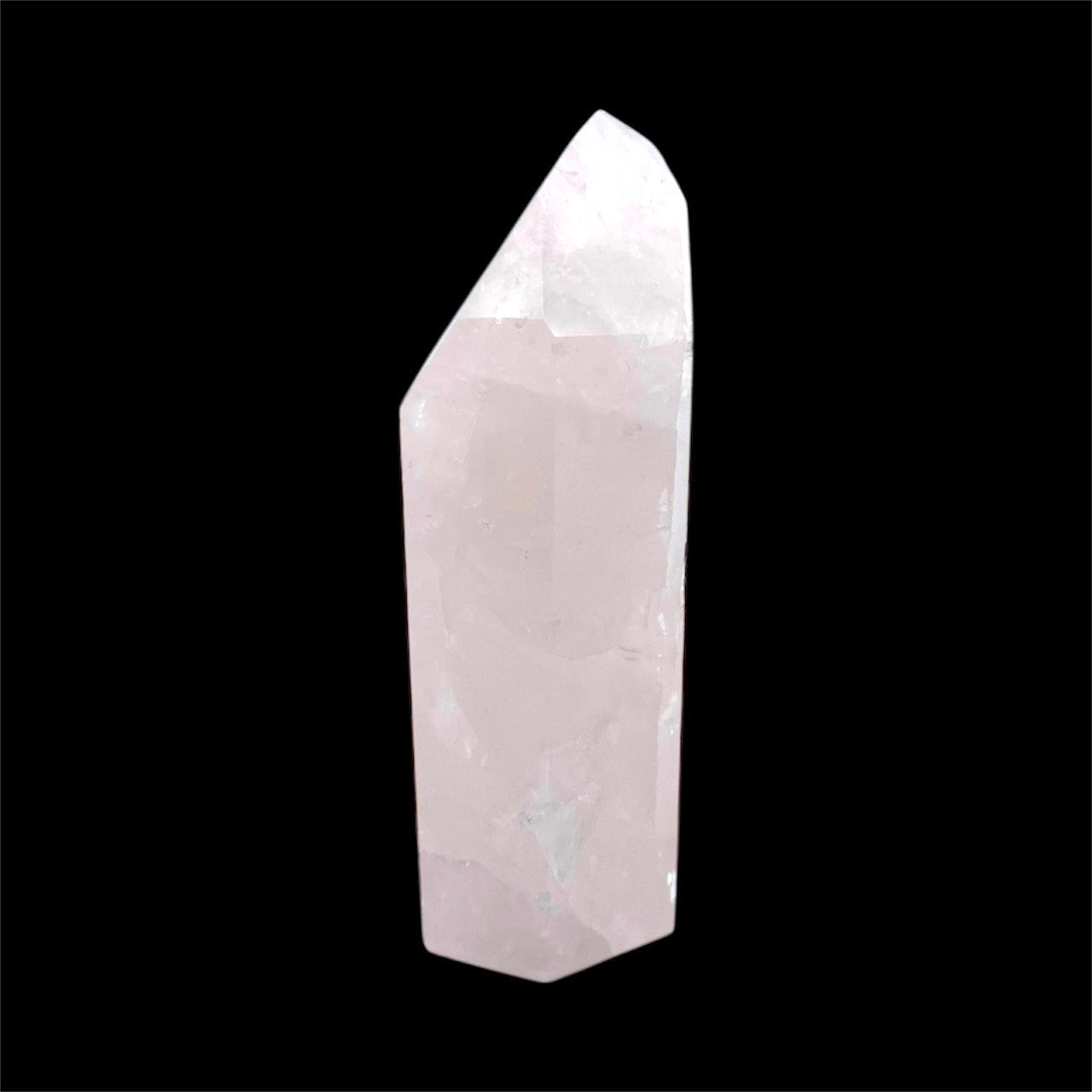 Vackert Rosenkvarts torn slipad obelisk med en sval, mjuk kärleksenergi som sprider en atmosfär av villkorslös kärlek ut i rummet.