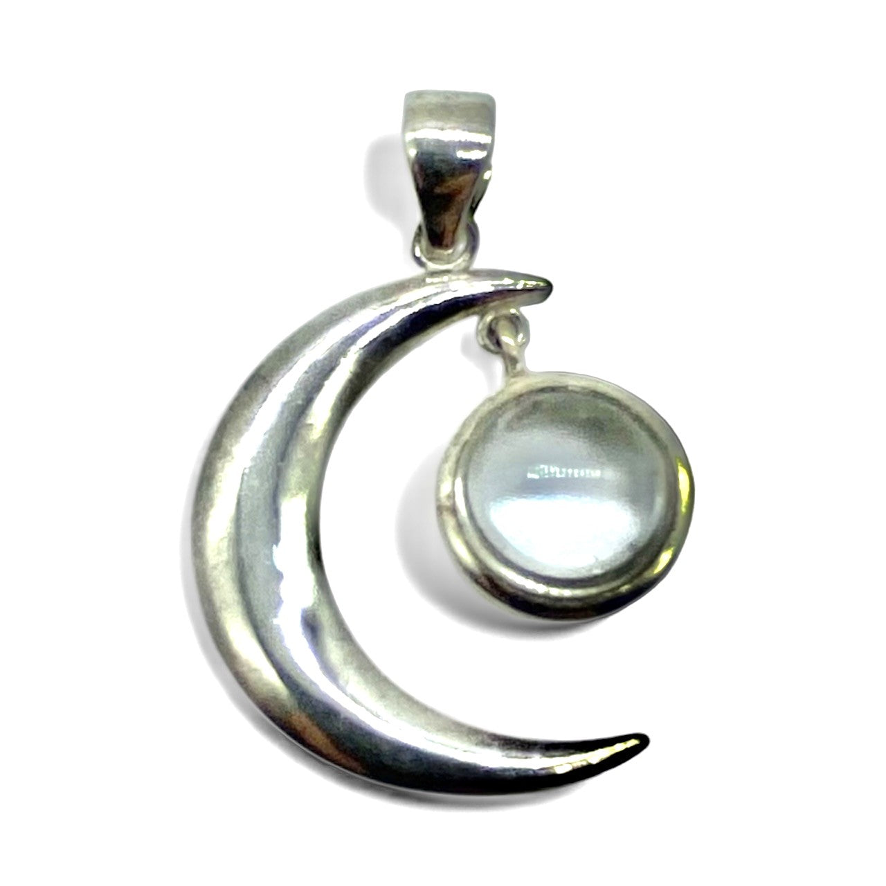 Storlek: hela hänget 4 cm, bred ca 2,5 cm, bergskristallkulan i mitten 1,5 cm